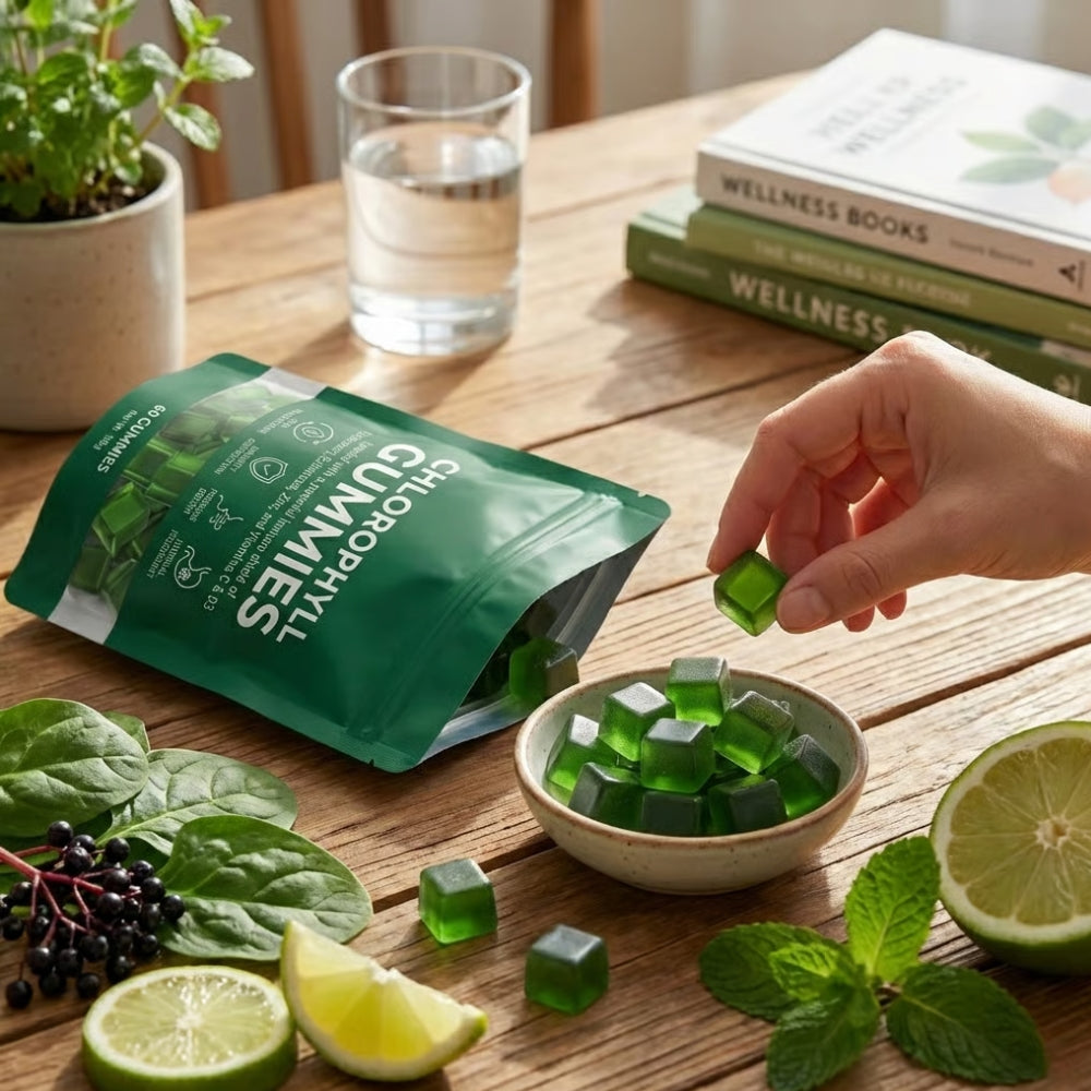 Our plant-powered formula of Chlorophyll and ACV provides a natural, effective way to achieve the clear, vibrant skin you love, letting your inner health shine through.